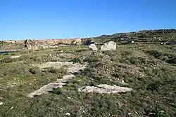 Ta’ Ħaġrat (kod 132-004)[3] - pozostałości megalitycznych świątyń, datowanych na IV i III tysiąclecie p.n.e. Kompleks składa się z dwóch budowli sakralnych. Wokół posiadającego kamienną podłogę prostokątnego dziedzińca znajdują się wejścia do trzech apsyd. Plan budowli przypomina liść koniczyny. | |