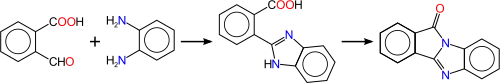 - ↑ A. Bistrzycki. Ueber die Einwirkung on o-Diaminen auf Phataldehydsäure. „Ber. Dtsch. Chem. Ges.”. 23 (1), s. 1042–1046, 1890. DOI: 10.1002/cber.189002301170.