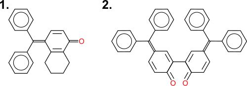 Związek ten został przekształcony w chlorek p-metoksytrytylu, z którego w wyniku eliminacji chlorku metylu powstał difenylochinometan, znany później jako p-fukson: