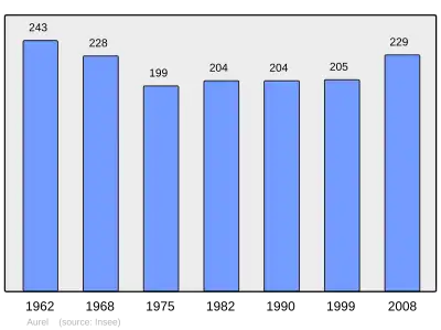 Według danych na rok 1990 gminę zamieszkiwały 204 osoby, a gęstość zaludnienia wynosiła 8 osób/km² (wśród 2880 gmin regionu Rodan-Alpy Aurel plasuje się na 1423. miejscu pod względem liczby ludności, natomiast pod względem powierzchni na miejscu 318.).