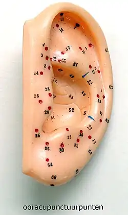 Aurikuloterapia – dział akupunktury polegający na leczeniu poprzez nakłuwanie małżowiny usznej.
