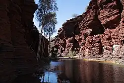 Region Pilbara odwadniany jest przez następujące rzeki: Ashburton, Fortescue, De Grey, Yule oraz inne, mniejsze. Wypływają one z Gór Hamersley i napełniają się wodą jedynie w okresie cyklonów tropikalnych. We wnętrzu lądu stosunki wodne są typowe dla Outbacku – nieliczne i okresowe cieki wodne uchodzą do słonych jezior (największe z nich to Carnegie, Mackay i Disappointment[13]) licznie rozsianych po całym pustynnym obszarze. Na południe od Pilbary suchy i niegościnny region jest odwadniany przez najdłuższą rzekę Australii Zachodniej – Gascoyne. Osiąga ona długość 865 km[14]. Pozostałe rzeki w tym regionie to Murchison, Wooramel oraz Sanford.