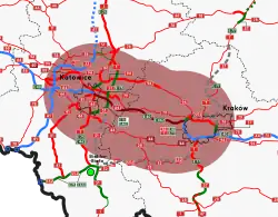 - ↑ Okręg katowicki 1:200 000, [w:] Polska: Mapa samochodowa 1:700 000, wyd. II Zmienione i poprawione, Szczecin: Wydawnictwo Kartograficzne KOMPAS, 1997–1998, ISBN 83-904373-3-3.
