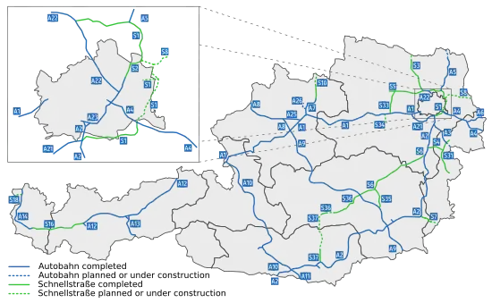 Po zakończeniu II wojny światowej Austria posiadała planowaną sieć (1422 km) autostrad, z których: