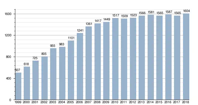 Liczba mieszkańców gminy Avinyonet de Puigventós w latach 1999–2018