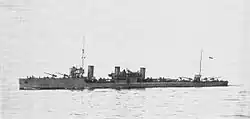 - ↑ Oficjalnie zaklasyfikowana na liście floty jako krążownik.