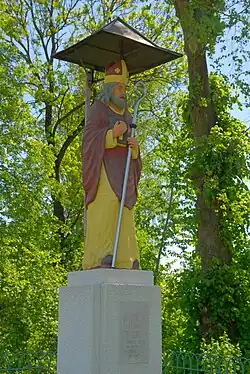 - pomnikowa figura św. Mikołaja patrona byłego kościoła,