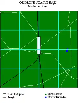 Stacja Bąk znajduje się w lasach, daleko od najbliższej miejscowości.