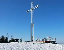 Na szczycie znajduje się Jubileuszowy Krzyż Ziemi Żywieckiej postawiony tam we wrześniu 2000 roku z okazji Jubileuszu 2000 ogłoszonego przez Kościół katolicki. Ma wysokość 23,5 metra. Kamień węgielny pod budowę został poświęcony przez Jana Pawła II 15 czerwca 1999 w Krakowie. Krzyż poświęcił biskup Tadeusz Rakoczy 16 września 2000[8]. W kazaniu podczas mszy biskup Rakoczy mówił: ustawiony jest w kierunku pięknej Ziemi Żywieckiej. Swymi ramionami ma symbolizować wspólnotę Żywiecczyzny, a przede wszystkim jedność wiary chrześcijańskiej.