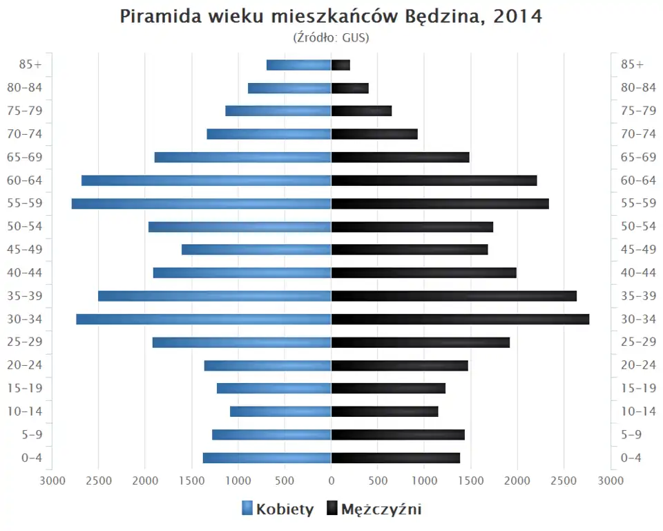 - ↑ Będzin w liczbach [online], Polska w liczbach [dostęp 2022-05-22], liczba ludności na podstawie danych GUS.