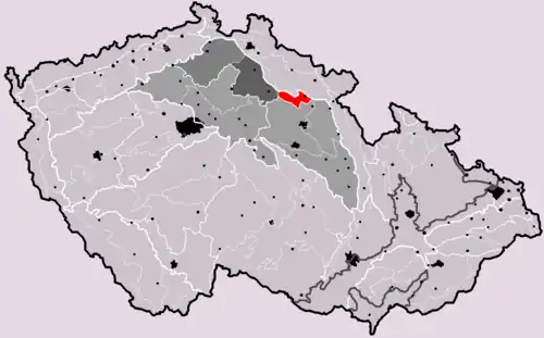 Zajmuje część powiatów Jičín i Trutnov w kraju hradeckim.