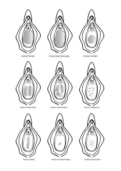 Najczęściej ma ona kształt pierścieniowaty lub półksiężycowaty (ok. 80% noworodków płci żeńskiej), rzadziej strzępiasty (ok. 19%)[15][16]. Zróżnicowanie w budowie żeńskiego układu rozrodczego może wynikać z agenezji lub hipoplazji i innych defektów, powodując różne komplikacje[17].