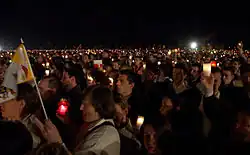 Podczas pielgrzymek papieży Jana Pawła II (1979, 1983, 1997 i 2002) oraz Benedykta XVI (2006), krakowskie Błonia były miejscem mszy świętych, w których uczestniczyło kilkaset tysięcy wiernych (najwięcej – ok. 2,5 mln wiernych – w czasie pielgrzymki w 2002 roku). Ołtarze były ustawiane od strony ulicy 3 Maja, na wysokości ulicy Reymana. Dzięki temu ołtarz był dobrze widoczny z każdego miejsca Błoń. W miejscu, w którym budowano ołtarze ustawiono pamiątkowy kamień upamiętniający te wydarzenia. Po śmierci Jana Pawła II na Błoniach odbywały się spotkania wiernych oraz nabożeństwa w intencji papieża.