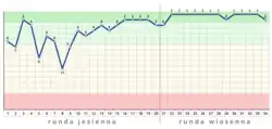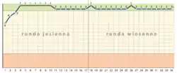 - ↑ Mniej punktów Podbeskidzie zdobyło w formalnie w sezonach 2013/2014 (30), 2014/2015 (27) i 2015/2016 (20), jednak było to spowodowane podziałem punktów po rundzie zasadniczej.