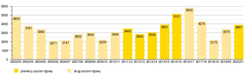 - 2. miejsce – awans do Ekstraklasy (2x): 2010/2011, 2019/2020