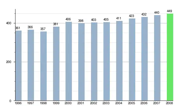 Zmiany liczby ludności w miejscowości Bačkovík od 1996 roku.