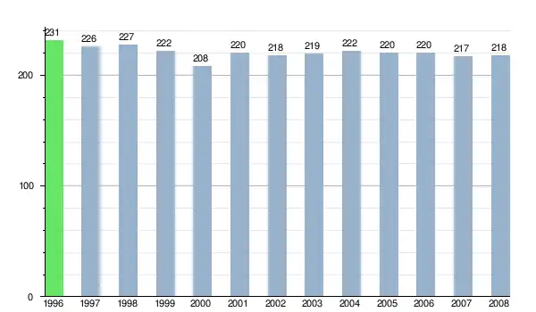 Zmiany liczby ludności w miejscowości Baďan od 1996 roku.