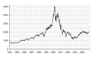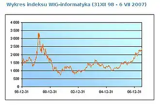 Na początku lutego 2000 r. „gorączka” zakupów spółek internetowych spowodowała, że indeks WIG osiągnął poziom 21 224 pkt i o ponad 2 proc. przekroczył szczyt z marca 1994 r. Hossa internetowa nie trwała jednak długo. Bańka spekulacyjna najpierw pękła w USA, potem wyprzedaż objęła pozostałe rynki. Na GPW w kwietniu 2000 r. załamała się wiara inwestorów w hossę napędzaną przez spółki internetowe. W kolejnych miesiącach spółki z sektora „nowej gospodarki” jeszcze parokrotnie znajdowały pokup u inwestorów, jednak ostatecznie GPW podążyła za trendem pozostałych rynków giełdowych.