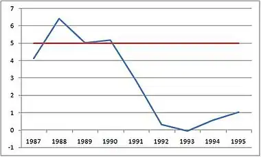 Początkowo wzrost podaży pieniądza spowolnił w 1986 roku (najniższa stopa wzrostu wyniosła 8,3% w październiku-grudniu 1986), wyznaczając koniec krótkiej „recesji endaka”. Tendencja ta został stopniowo odwrócony, a następnie przyspieszyła do ponad 10% w kwietniu-czerwcu 1987 roku[26][27].