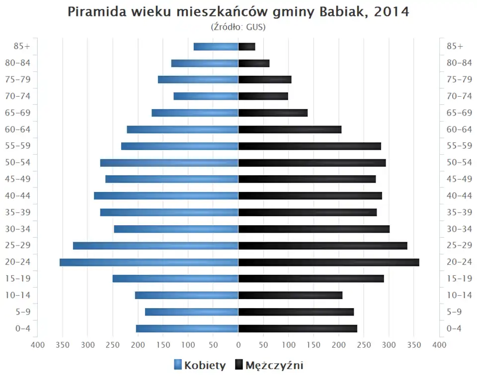 - Piramida wieku mieszkańców gminy Babiak w 2014 roku[1].
