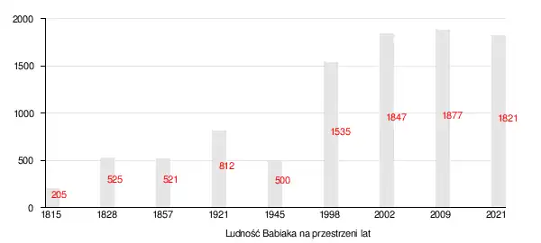 - 1816 – Bonawentura Raczyński sprowadził do Babiaka sukienników z Niemiec w celu założenia osady fabrycznej. Wieś uzyskała prawa miejskie[9]. Liczba ludności wyniosła 205 mieszkańców.