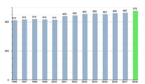 Zmiany liczby ludności w miejscowości Babiná od 1996 roku.