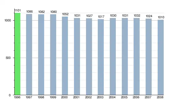 Według danych z dnia 31 grudnia 2012 roku, wieś zamieszkiwało 995 osób, w tym 521 kobiet i 474 mężczyzn[6].
