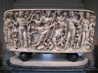 ![]() Scena śmierci Penteusza rozszarpywanego przez menady. Attycka ceramika czerwonofigurowa (V wiek p.n.e.) Muzeum w Luwrze | |
