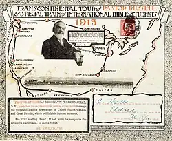 Powstające klasy biblijne często zapraszały C.T. Russella do złożenia osobistej wizyty. By zdążyć na umówione wykłady wynajmowano niekiedy specjalny „wagon kongresowy”, którym Russell i wąskie grono współpracowników podróżowało po wyznaczonej wcześniej trasie. Jeśli jednak podróżować miała większa grupa osób, zamawiano „pociąg kongresowy”. Wielkie podróże transkontynentalne zorganizowano w 1911 i 1913 roku. W 1911 roku podróż ta trwała od 9 czerwca do 12 lipca. C.T. Russell odwiedził zbory i uczestniczył w zgromadzeniach w Indianapolis, St. Louis, Kansas City, Wichita, Pueblo, Colorado Springs, Denver, Salt Lake City, Los Angeles, Pasadena, Santa Cruz, San Francisco, Oakland, Sacramento, Portland, Tacoma, Seattle, Victoria, Vancouver, Calgary, Winnipeg, Duluth i Huron oraz Toronto.