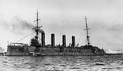 | 2 działa 203 mm L/45 (2 × I), 8 dział 152 mm L/45 (8 × I), 20 dział 75 mm L/50 (20 × I), 8 dział 47 mm (8 × I), 2 działka 37 mm (2 × I), 2 działa 63,5 mm (desantowe), 2 wyrzutnie torped 381 mm (2 × I) | |