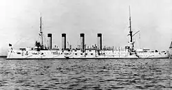 - ↑ Były to krążowniki pancerne „Asama”, „Tokiwa” i pancernopokładowe 3. Eskadry: „Kasagi”, „Takasago”, „Chitose”, „Yoshino”.