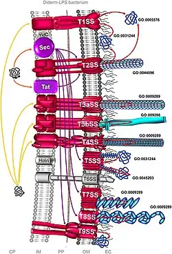 - ↑ Sandra Schwarz, Rachel D. Hood, Joseph D. Mougous, What is type VI secretion doing in all those bugs?, „Trends in Microbiology”, 18 (12), 2010, s. 531–537, DOI: 10.1016/j.tim.2010.09.001, ISSN 1878-4380, PMID: 20961764, PMCID: PMC2991376 [dostęp 2024-03-31].