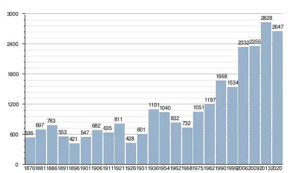 Źródło: Historique des populations communales. insee.fr, 29 grudnia 2022. [dostęp 2023-11-09]. (fr.).