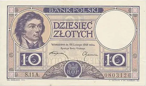 - ↑ Czesław Miłczak, Banknoty polskie i wzory, wyd. Pierwsze, t. I, 1794–1941, Warszawa: Antykwariat Numizmatyczny Paweł Niemczyk, 2012, s. 312–317, ISBN 978-83-913361-3-7.