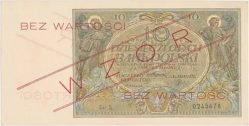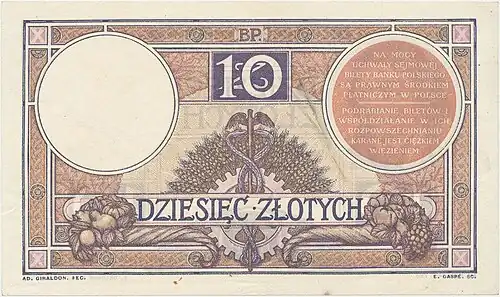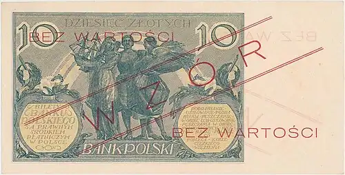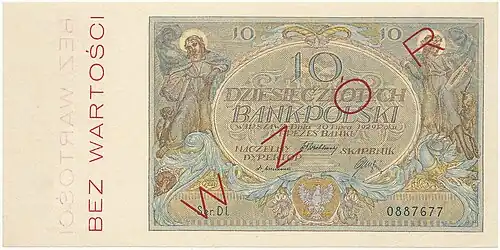Awers 10 złotych 1928 bez serii i numeracji