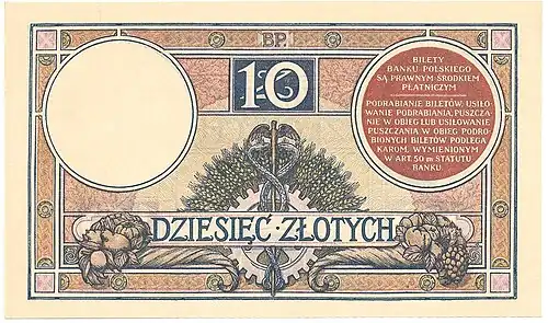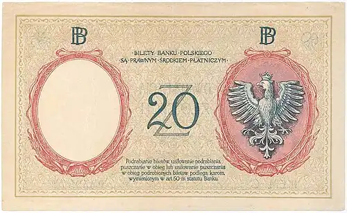 - ↑ Czesław Miłczak, Banknoty polskie i wzory, wyd. Pierwsze, t. I, 1794–1941, Warszawa: Antykwariat Numizmatyczny Paweł Niemczyk, 2012, s. 348, 352–355, ISBN 978-83-913361-3-7.