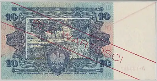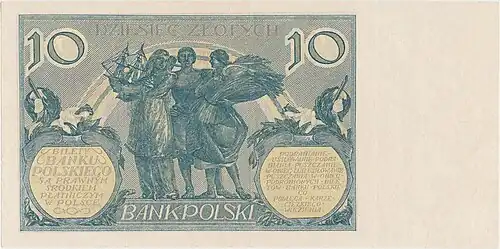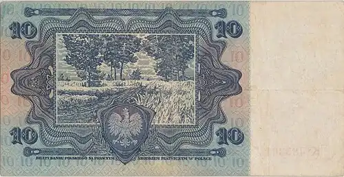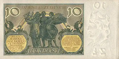 Wycofane z końcem 1932 r. banknoty dziesięciozłotowe ponownie wprowadzono do obiegu 26 sierpnia 1939 r., spodziewając się w okresie wojennym spontanicznego eliminowania przez ludność z użycia srebrnych monet o tym samym nominale[6].