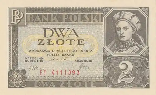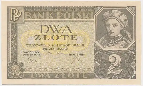 trafił do obiegu dwuzłotowy banknot z księżną Dobrawą z datą emisji 26 lutego 1936, pierwotnie pełniący funkcję rezerwy na wypadek braku monet. Banknoty te wypuszczano niekiedy bez oznaczenia serii i numeracji, a nawet bez poddruku[6].