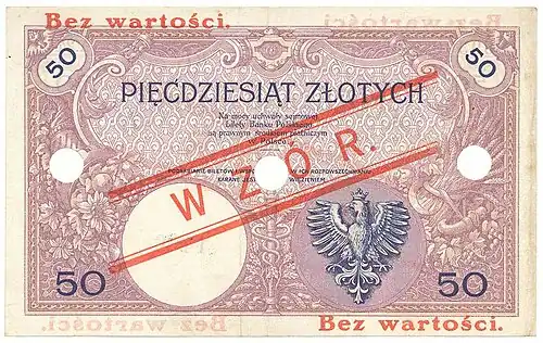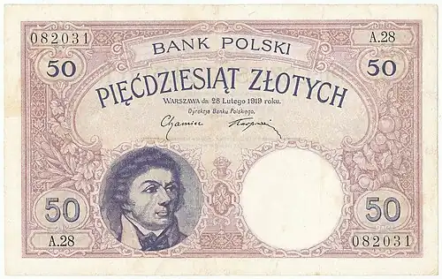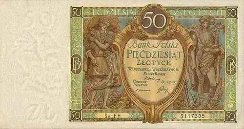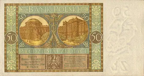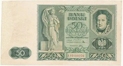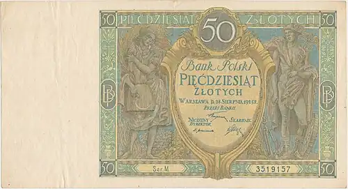 - ↑ Banknot 50 złotych 1936 [online], mojebanknoty.cba.pl [dostęp 2019-04-03].
