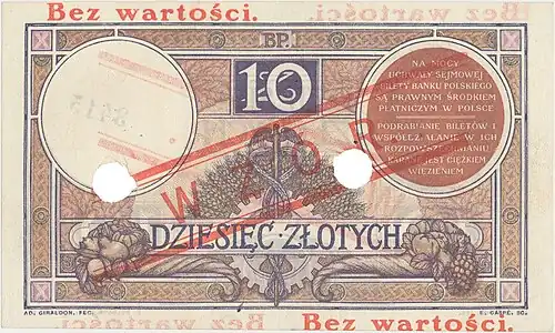 - wycofanymi z końcem 1932 r. banknotami dziesięciozłotowymi III i IV emisji oraz
