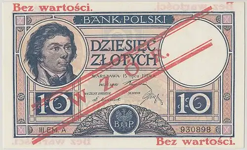 Z datami emisji 1925 oraz 1926 przygotowano i wprowadzono w 1927 r. trzy nominały banknotów: 10, 20 i 50 złotych o całkowicie zmodyfikowanych wzorach rysunków awersu oraz rewersu. Była to tzw. III emisja Banku Polskiego. Banknoty te drukowano początkowo w Państwowych Zakładach Graficznych, a później w Wytwórni Papierów Wartościowych[5].