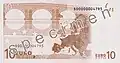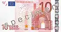 | 10 € | 127 × 67 | czerwony | romański | XI-XII | u góry na lewo od hologramu | ||||
