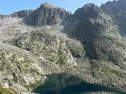 ![]() Masyw Baranich Rogów od strony Doliny Pięciu Stawów Spiskich z opisanymi formacjami | |