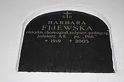 - ↑ Cmentarz Stare Powązki: BARBARA FIJEWSKA, [w:] Warszawskie Zabytkowe Pomniki Nagrobne [dostęp 2019-11-02].