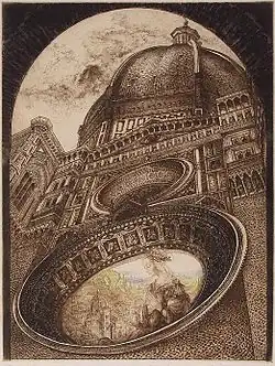 Artystka tworzy kompozycje graficzne w klasycznych technikach metalowych, często wielobarwne. Głównym wątkiem jej twórczości są rozbudowane, symboliczne i fantastyczne pejzaże i weduty, w których kumuluje motywy architektoniczne, cytaty figuralne ze starego malarstwa (np. Madonny, akty itp.), detale zdobnicze i ornamenty z różnych epok historycznych (renesans, barok, secesja) ujęte w nierealne perspektywy.