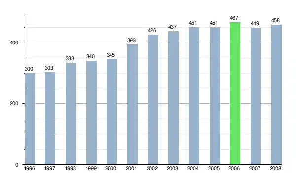 Zmiany liczby ludności w miejscowości Barca od 1996 roku.