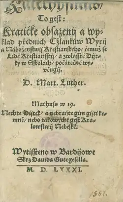 - 1 2 3 4 5 6 bardejovské katechizmy [online], Encyclopaedia Beliana, sierpień 1999 (słow.).