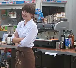 barista [w:] Słownik języka polskiego [online], PWN [dostęp 2024-10-25]. - ↑ Jarosław Mikołajewski. Pochwała codziennej pracy sklepikarza. „Gazeta Wyborcza”. 55 (8888), s. 41, 7–8 marca 2015. Warszawa: Agora SA. ISSN 0860-908X.