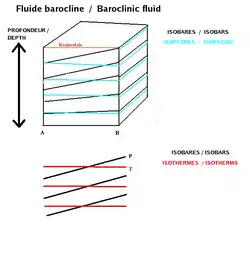 Baroklinowość (sytuacja baroklinowa, przepływ baroklinowy, atmosfera baroklinowa) w atmosferze to stan przeciwny do barotropowości[1]. Gęstość powietrza zależy nie tylko od ciśnienia, ale także od temperatury i wilgotności. Izobary nie są równoległe do izoterm, lecz się z nimi przecinają.