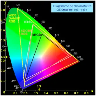 Newton pierwszy stwierdził, że uzyskiwane barwy nie są cechą pryzmatów, lecz światła, które można rozdzielać i ponownie łączyć, uzyskując światło białe. Zaproponował koło barw, którego wycinki odpowiadają udziałom siedmiu kolorów w widmie (czerwona, pomarańczowa, zielona, niebieska, indygo, fioletowa) i wskazał punkt odpowiadający światłu białemu. Wyniki swojej pracy przedstawił w Royal Society w roku 1672 jako a new theory of light and colours[11][12]. W kolejnych dziesięcioleciach koncepcja spotykała się ze sprzeciwami; protestował m.in. Johann Wolfgang von Goethe (1749–1832), zajmujący się problemami barw od roku 1791, którego praca Theory of Colours ukazała się w roku 1810[13]. Goethe wyśmiewał możliwość uzyskiwania bieli z barw chromatycznych, myśląc wyłącznie o syntezie subtraktywnej, czyli efektach odbicia światła od powierzchni pokrytych mieszaninami barwników, pochłaniających fale o różnej długości (sumowanie efektów absorpcji powoduje wzrost udziału czerni – nasycenia szarością). Różnica między syntezą subtraktywną i addytywną (mieszaniem wiązek światła o różnych widmach, powodującym zwiększanie udziału bieli) stała się wkrótce oczywista[14], m.in. dzięki pracom niemieckiego matematyka i astronoma, Tobiasa Mayera, autora pracy De Affi nitate Colorum Commentatio (1758) i Georga Palmera, autora książki Theory of Colours and Vision (1777)[15].